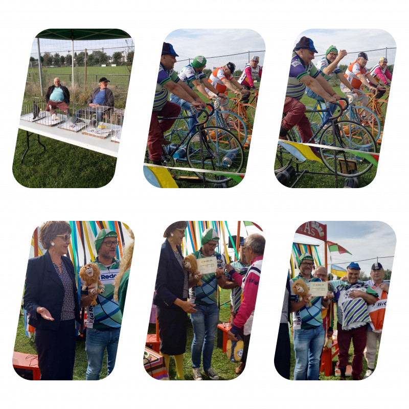 Le « CLOU » de la matinée c’est lorsqu’après plusieurs visites reçues, au stand des colombophiles ; une des animations « Le critérium des As » … a permis à notre équipe de se présenter ….voir photos….